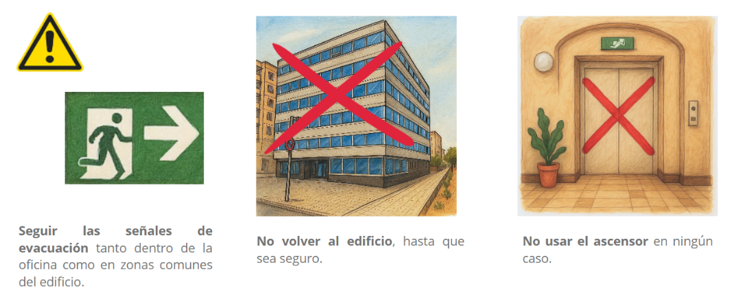 Es crucial que seáis conscientes de su importancia y por ello, rogamos os familiaricéis con las rutas de evacuación y los puntos de reunión marcados.